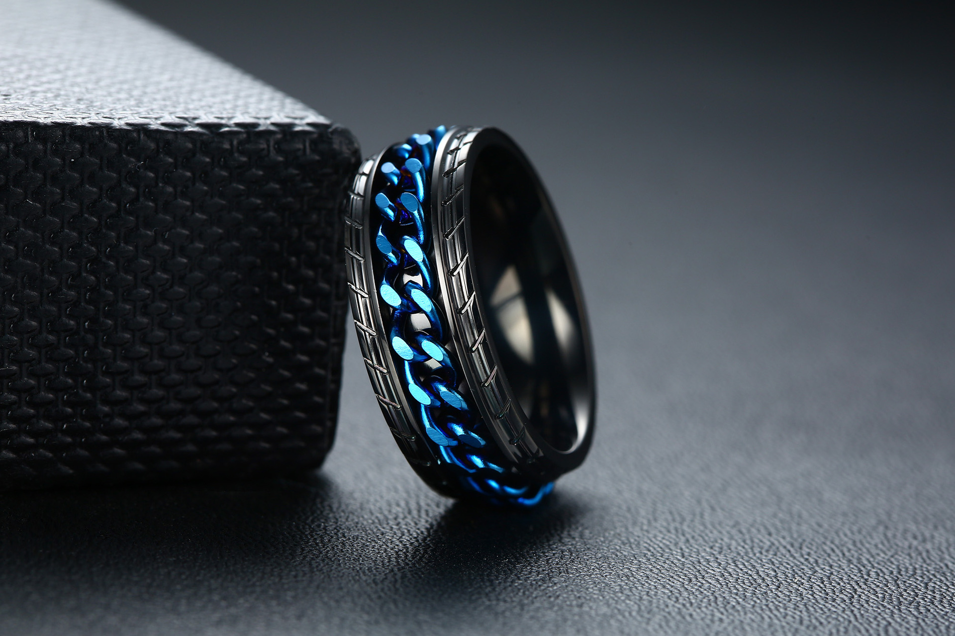 Featuring a unique rotating chain design, it allows for a captivating interplay of movement that is bound to attract attention and spark conversations. Whether you're dressing up for a special occasion or adding flair to your everyday look, this ring is the perfect accessory.