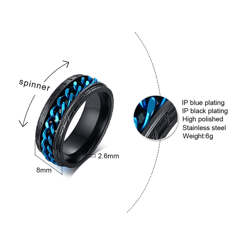 Discover the ultimate in modern jewelry with our stunning 8MM Stainless Steel Rotating Chain Ring. Crafted from high-quality titanium steel, this ring is not just a piece of jewelry, but a statement of style and individuality.